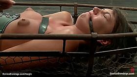 Enslaved beauty in tight rope bondage. The pretty slut with hands cuffed nothing can do, like follows Frank perverted games.
