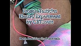 Strapped on cage slave gets shocked