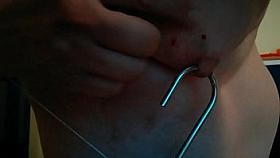 Trimmed slave fucked with dick on a stick
