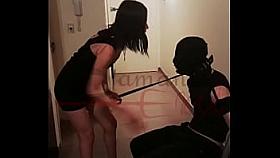 Slut with tied legs together whipped