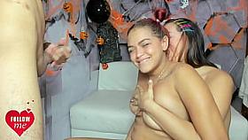 Euro femdoms strapon fucking tech guy in kinky threesome