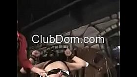 Nasty domina shoves dildo up her subs hole