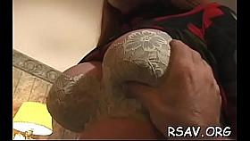 Bondage fetish action with sexy fastened up playgirl getting licked